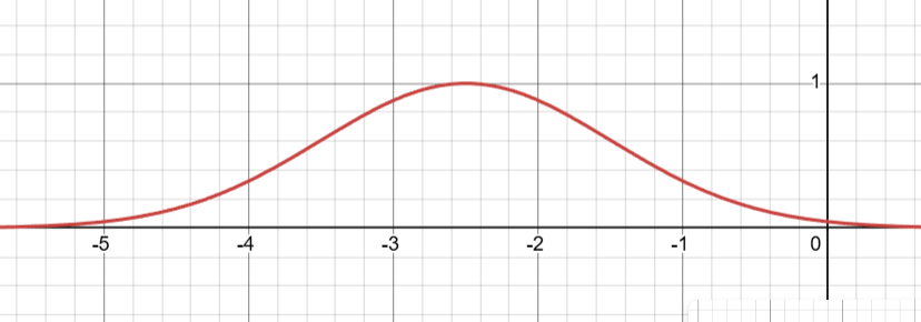 The RBF function \(k(x,x')\) centered at \(x'=-2.5\) with \(\ell = 1\)