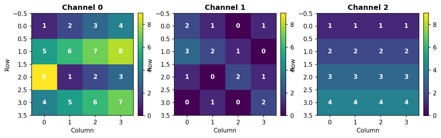 B_hwc[0, :, :]looks like (first row, all columns, all channels) - At position [0, 0], what are the values for all channels?