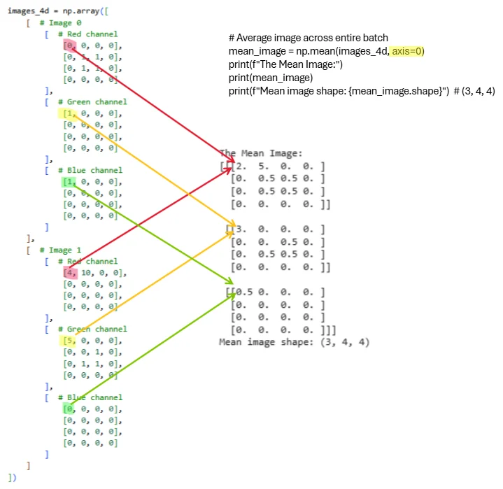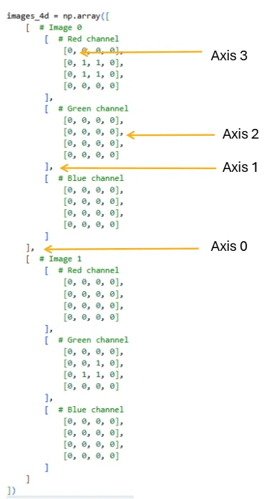 Throughout this chapter, we emphasize understanding array shapes, dimensions, and the critical concept of axis-based operations. We also introduce four-dimensional arrays here, and in later chapters we build on this foundation to perform visualization and computations on these arrays — techniques that translate directly into image processing applications.