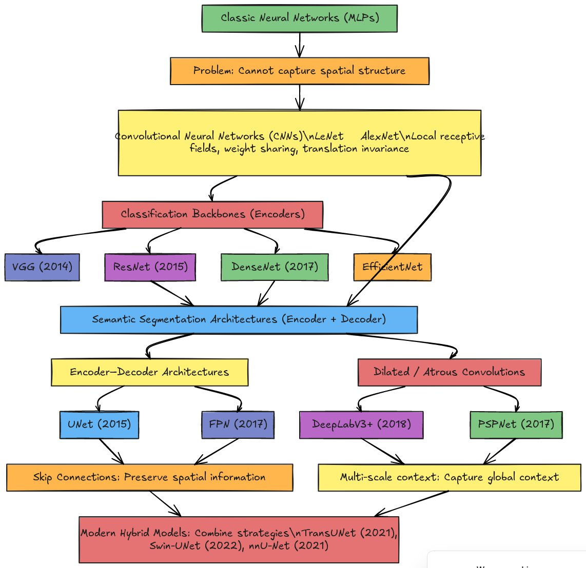 The evolution of neural networks for image analysis follows a clear historical trajectory, driven by the need to solve increasingly complex visual tasks. Understanding this progression helps contextualize where modern architectures like U-NET and ResNet fit within the broader landscape.