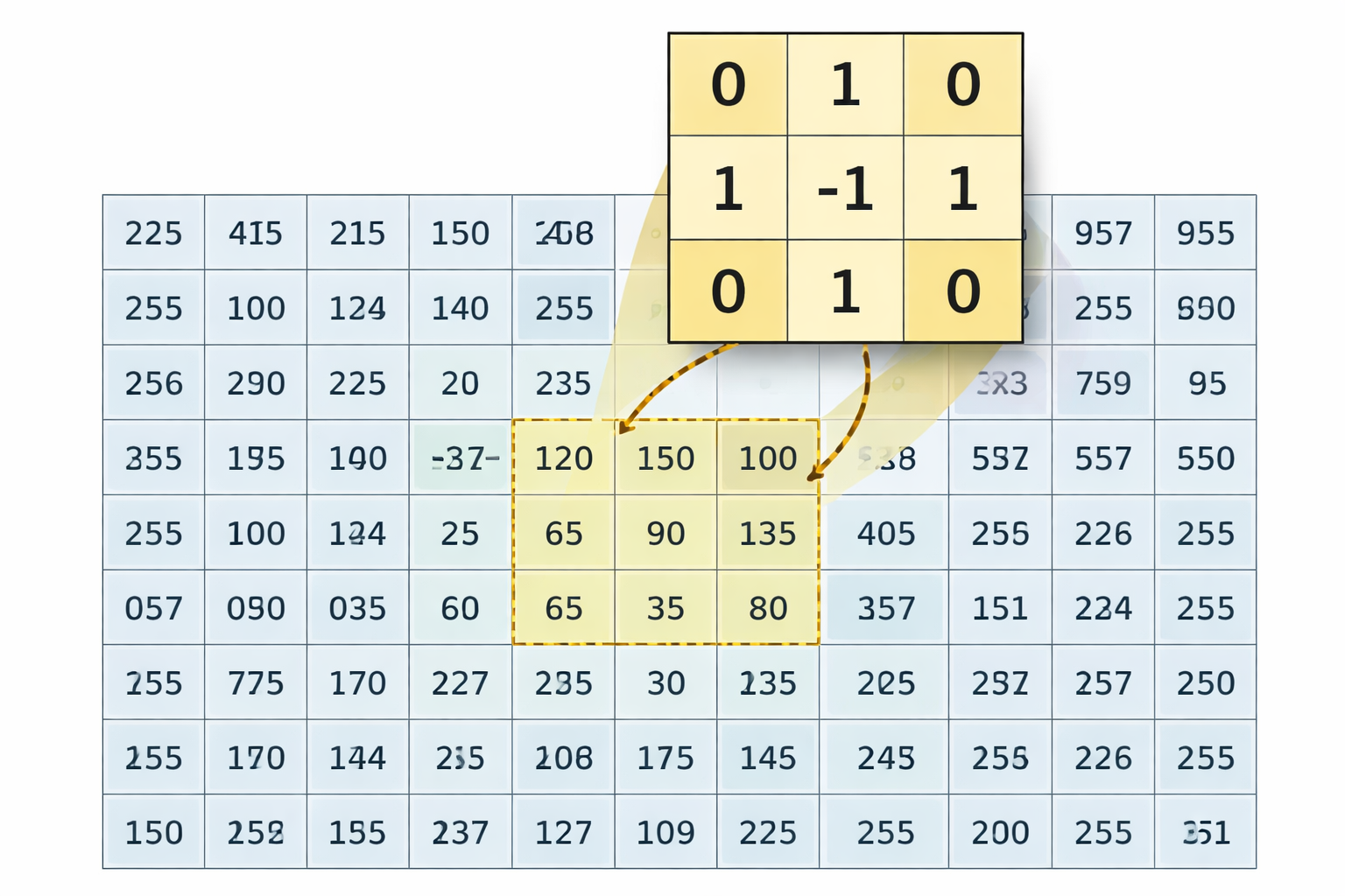 The filters below are also the right conceptual bridge to convolutional neural networks. Most of them take a small neighborhood — a kernel sliding across the image — and produce a new feature map emphasizing a particular signal: smoothness, boundaries, or texture. CNNs generalize this idea by learning the best kernels from data. Studying handcrafted filters first makes that leap concrete.